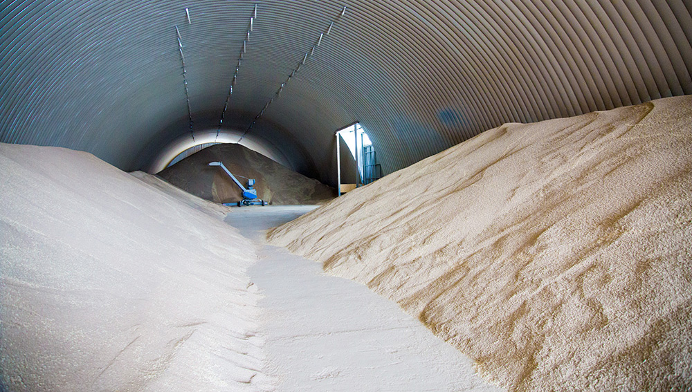 В первую очередь необходимо уделить особое внимание выбору места для хранения. Для содержания очищенного от примесей материала рекомендуем сделать выбор в пользу специальных площадок для складирования с крышей или навесом. Там стройматериал будет надежно защищен от воздействия негативных погодных условий, исключая возможность загрязнения и утраты полезных свойств. Если такой площадки нет, допустимо хранения песчаных зерен на открытом воздухе, если он не проходил процедуру